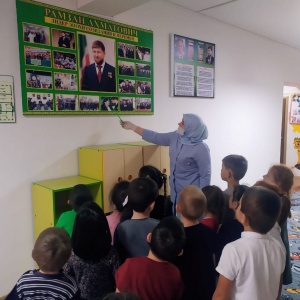 В МБДОУ "Детский сад√3 "Теремок" с. п. Знаменское" прошли беседы, посвященные Дню рождения главы ЧР, героя России Р. А. Кадырова.