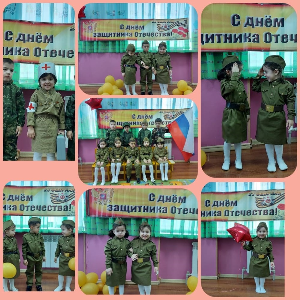 А пока мы знакомим детей и рассказываем, что такое армия, воспитываем уважительное отношение к военному человеку, человеку в форме, прививаем любовь к Родине, и развиваем патриотические чувства. Такие мероприятия, проведённые с детьми, закладывают в их душах зёрнышки патриотизма, чувства долга перед Родиной. Дети с любовью, нежностью и гордостью читали стихи о защитниках Отечества, пели песни, танцевали, а также показали ловкость и мужество.