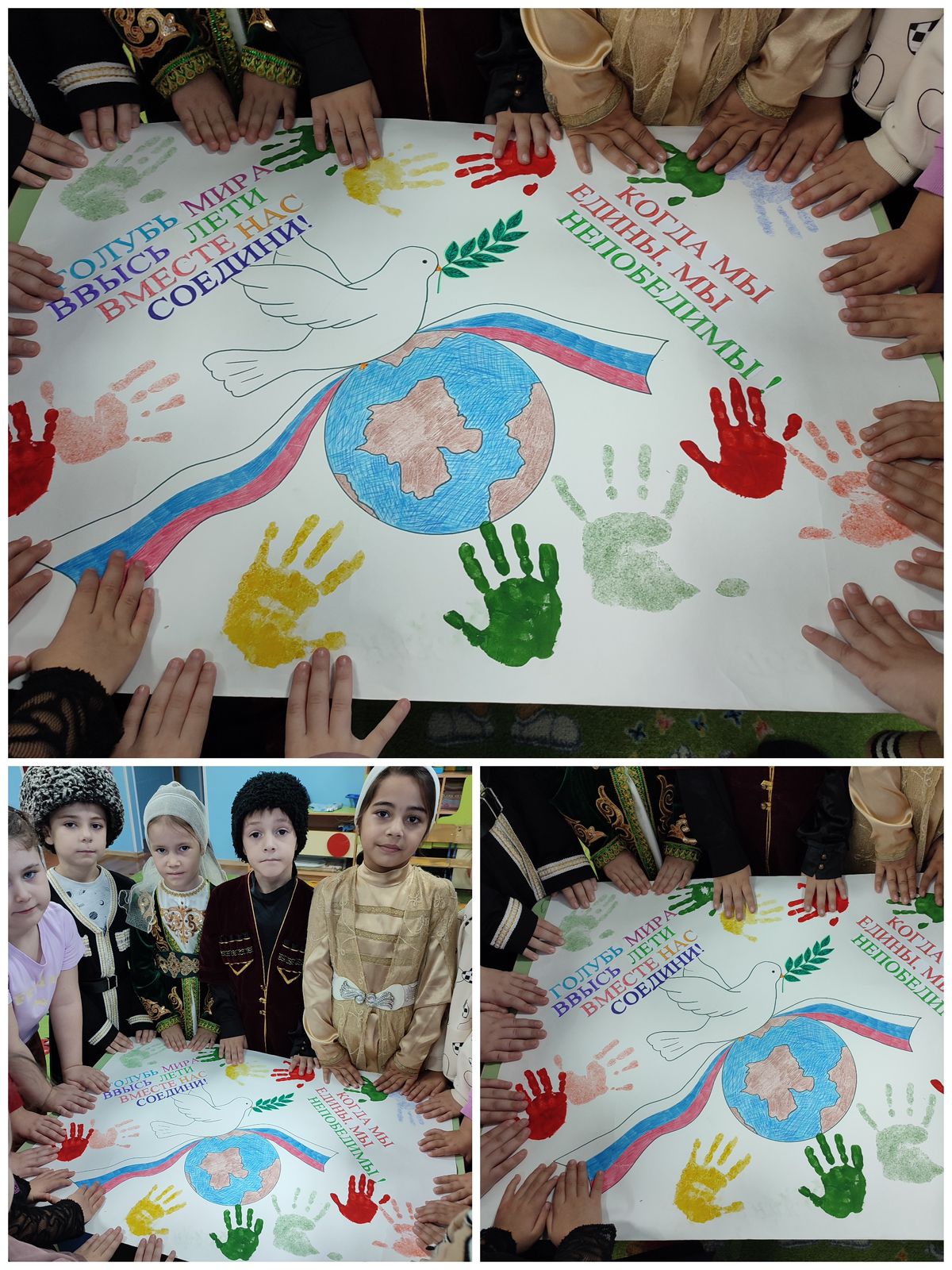 В МБДОУ «Детский сад №3 «Теремок» с.п.Знаменское» прошли тематические беседы, посвященные Дню народного единства. День народного единства празднуется 4 ноября. В дошкольном учреждении к этой дате готовятся, знакомя детей с национальными символами республики, заучивают слова гимна ЧР, знакомят с историей праздника.